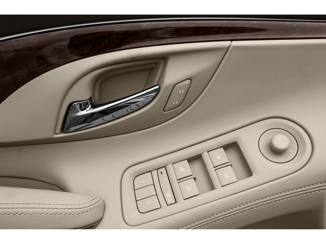 - Door panel insert: Simulated wood and metal-look door panel insert